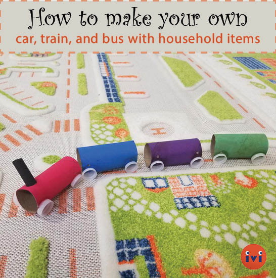 Easy DIY arts and crafts car, train, and bus for indoor play time!