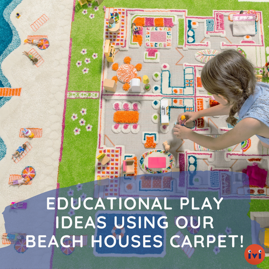 There are tons of different ways to have fun while learning on our IVI 3D play carpets. This week we will be showing you 3 ways to tie in education with play using our Beach Houses play carpet!